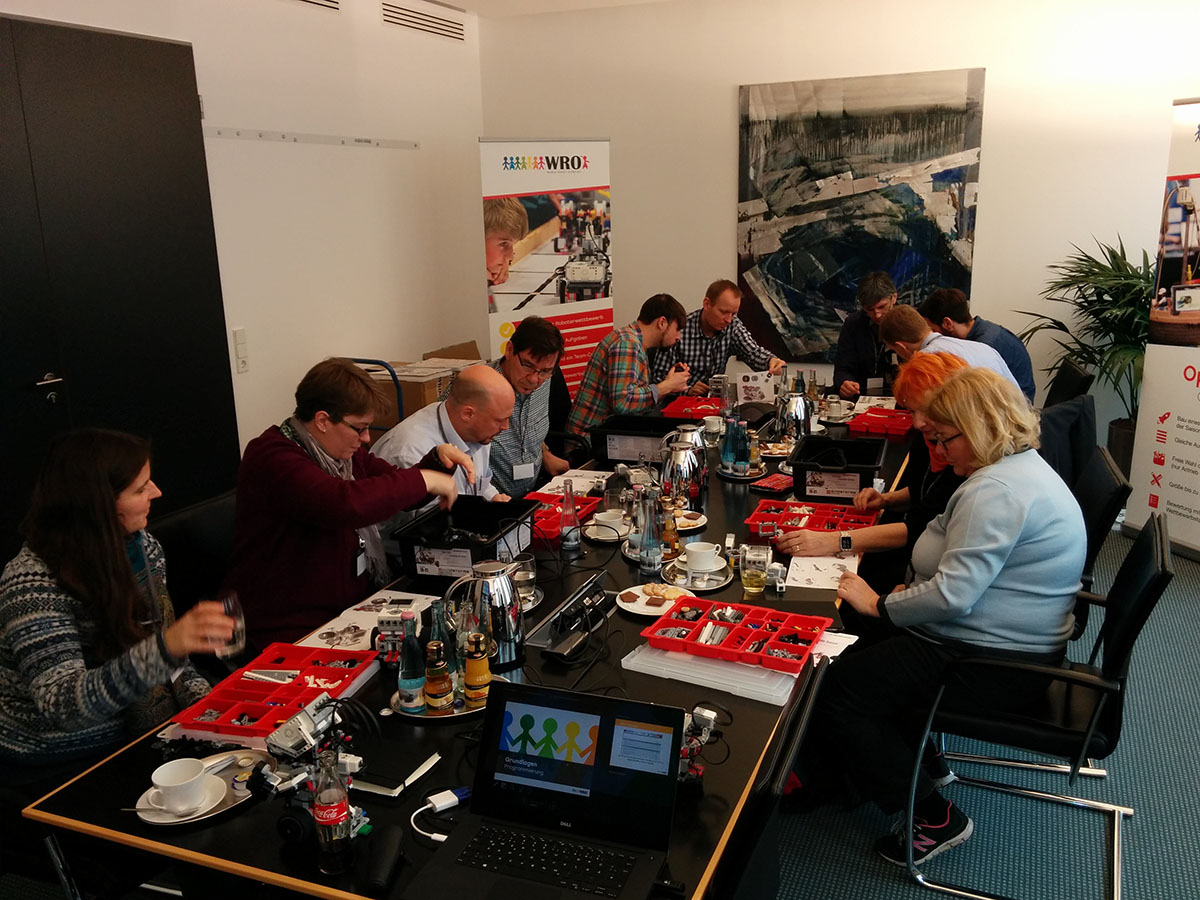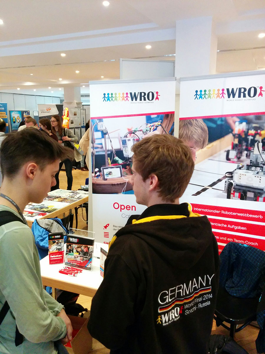 Wir waren mit der World Robot Olympiad dabei und haben uns auf dem Bildungsmarkt am Donnerstag (4. Februar) vorgestellt und zahlreiche Gespräche mit interessierten Schülerinnen, Schülern und Lehrern geführt. Am Freitag (5. Februar) durften wir in den Räumen von Gesamtmetall in Berlin einen Lehrerworkshop für 11 Lehrer aus ganz Deutschland durchführen. Die Lehrer kamen zum ersten Mal mit LEGO Robotern in Berührung und wir haben mit ihnen nach dem Bau eines Roboters verschiedene Programmierübungen durchgeführt.