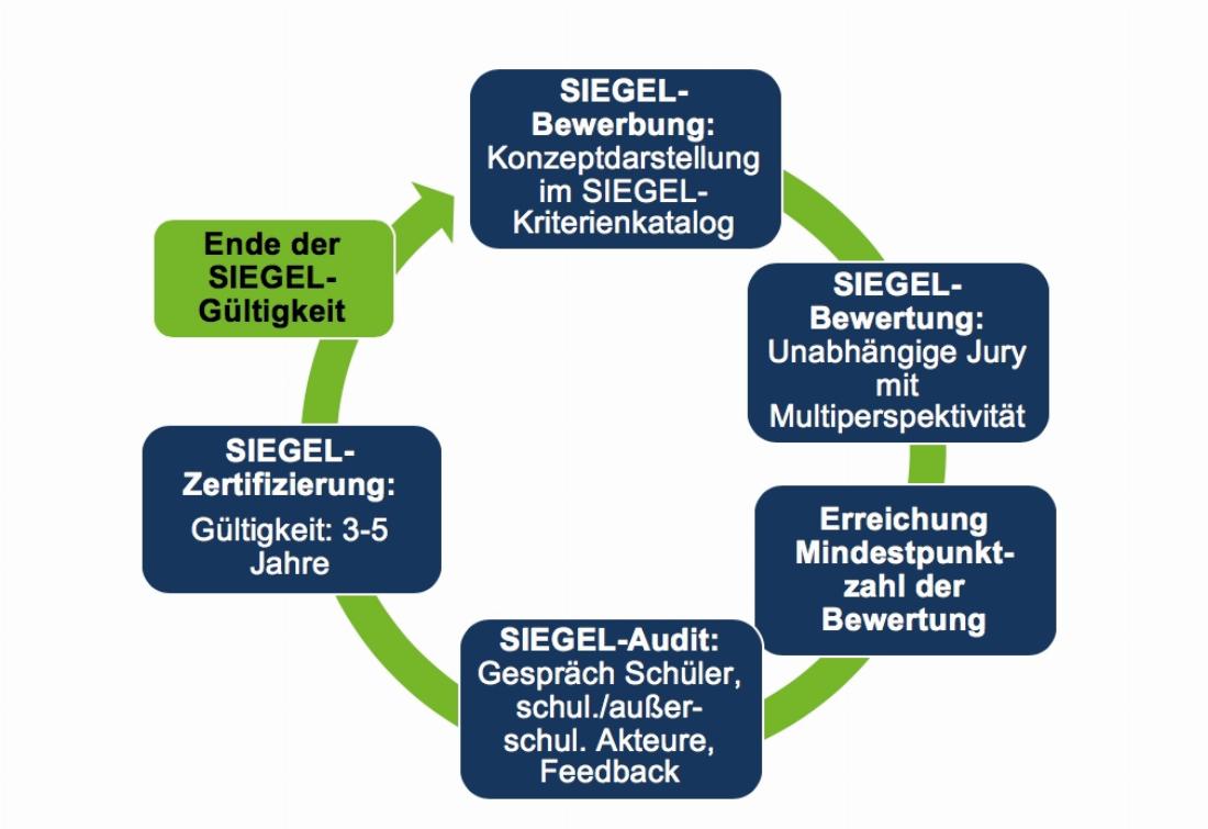 Für das SIEGEL können sich Schulen in 28 Regionen in allen Bundesländern bewerben. Inzwischen sind es über 1.600 ausgezeichnete Schulen, darunter Schulen der Sekundarstufe 1 ebenso wie Gymnasien und auch Förderschulen. Eine Jury aus Schule, Wirtschaft und Beratung besucht die Bewerberschule vor Ort und gibt Feedback, bundesweit sind 1400 Jurymitglieder aktiv. Verliehen wird das SIEGEL mit Urkunde und Plakette in einer Feierstunde. SIEGEL-Schulen werden Teil eines bundesweiten Netzwerks mit weiteren interessanten Angeboten; neu ist seit 2021 die SIEGEL-Akademie zur Fortbildung. Verantwortlich für die Vergabe sind die Trägerregionen, lokale Netzwerke aus Wirtschaft, Kammern, Arbeitsagenturen, Ministerien, Stiftungen u.a.m.
