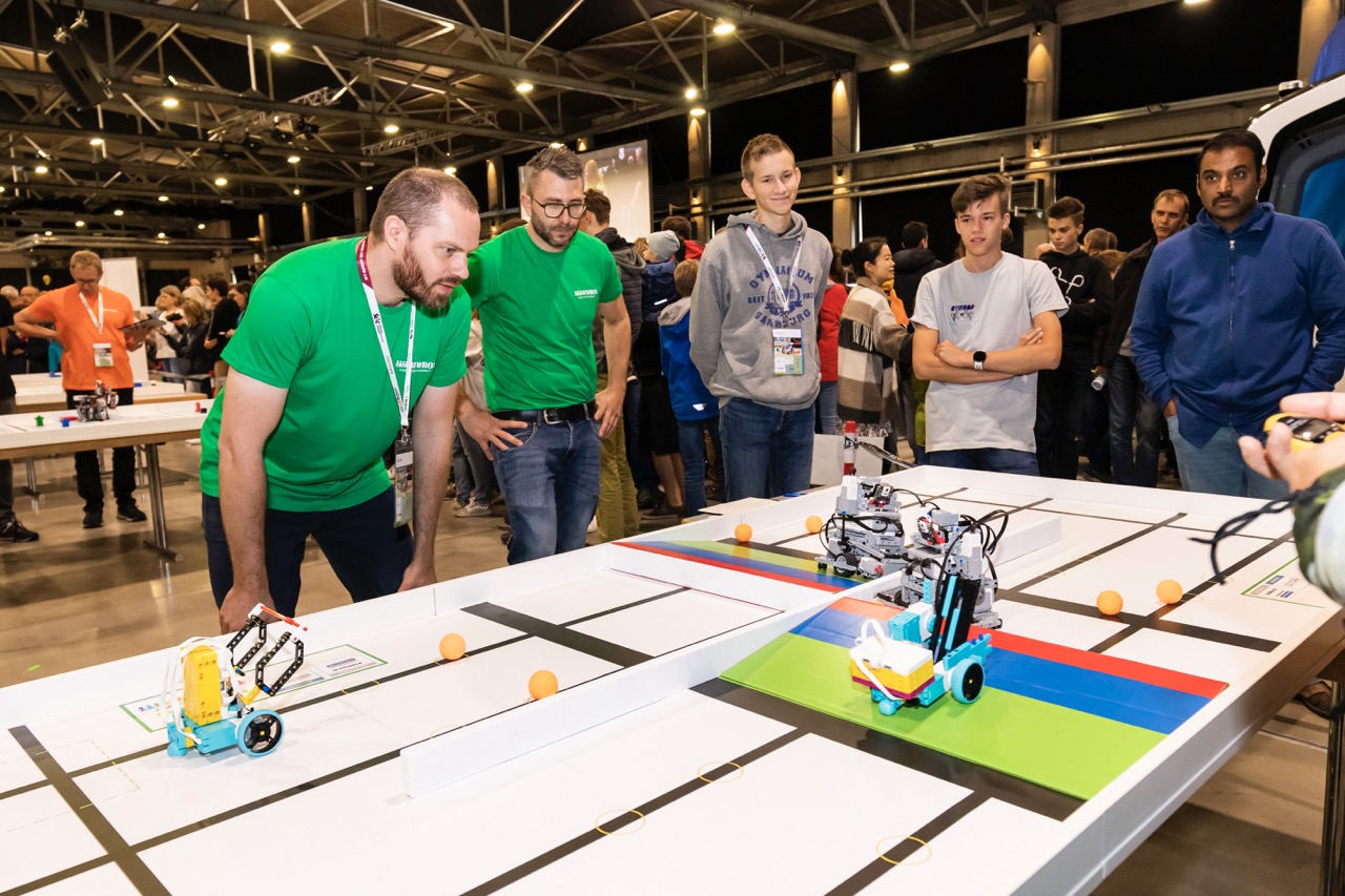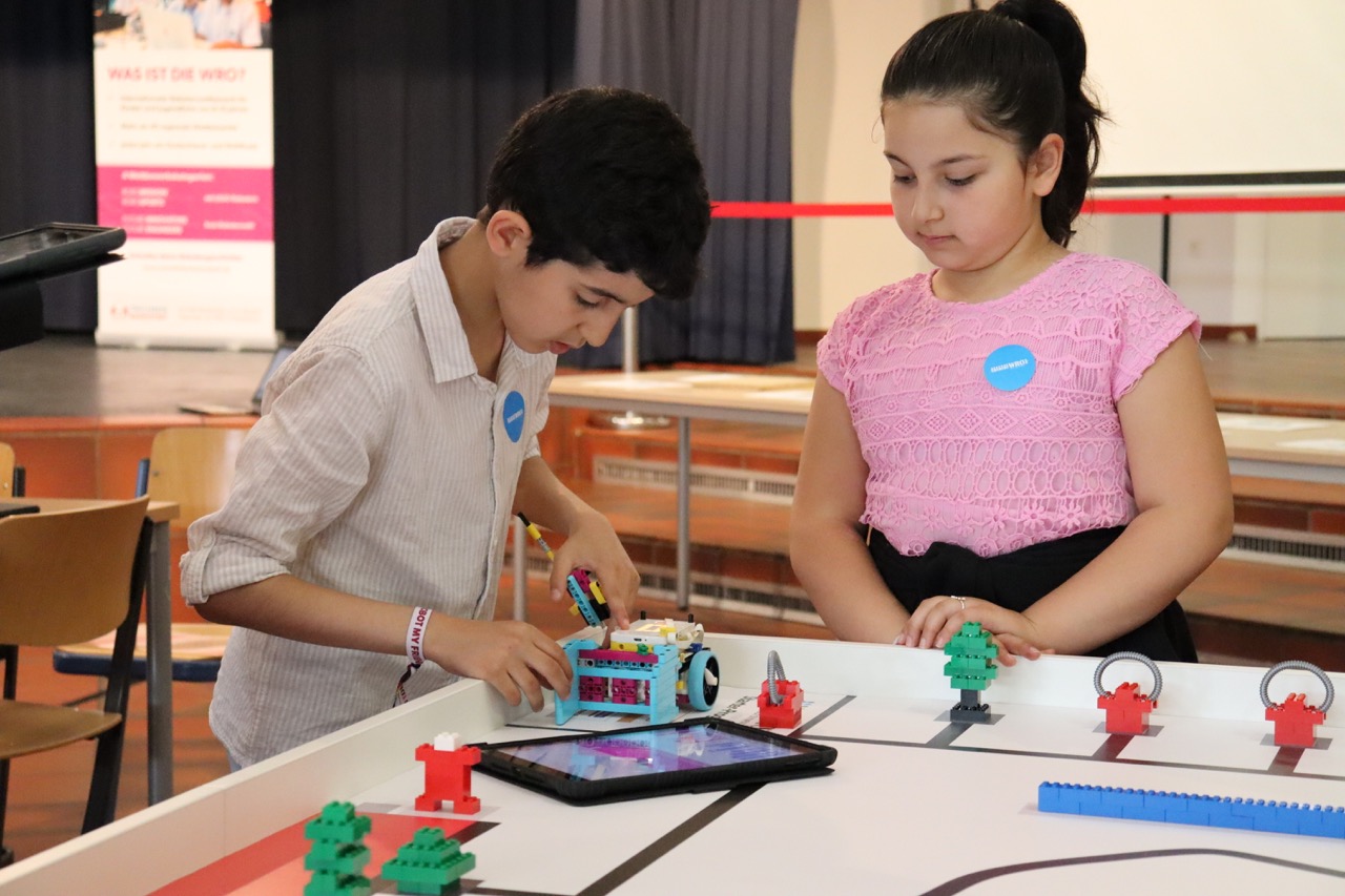 Neben dem Bauen und Programmieren des Roboters ist hier auch die Koordination der beiden Roboter untereinander gefragt.