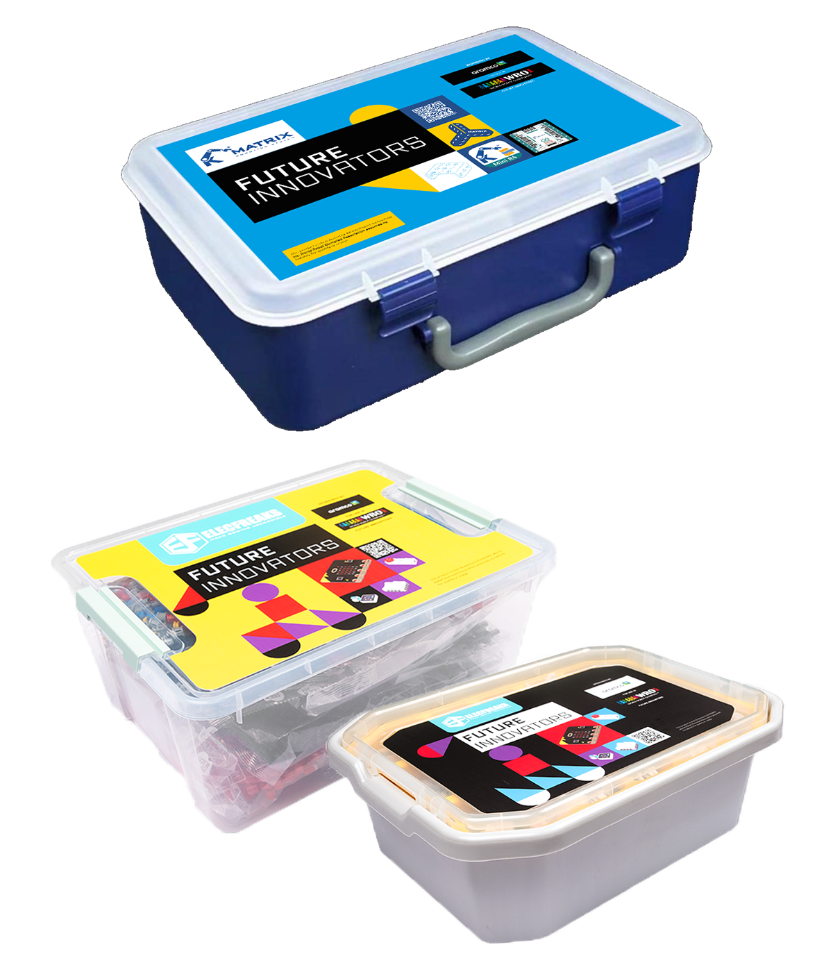 Speziell für den Einsatz bei Future Innovators wurden durch die WRO Association in Zusammenarbeit mit den globalen Partnern Elecfreaks und Matrix Roboter-Sets für den Einstieg in diese Kategorie entwickelt. Diese Sets haben unter anderem viele Sensoren und Bauteile, um viele verschiedene und kreative Robotermodelle in der Kategorie zu entwickeln. Natürlich sind weiterhin alle Materialien bei Future Innovators erlaubt.